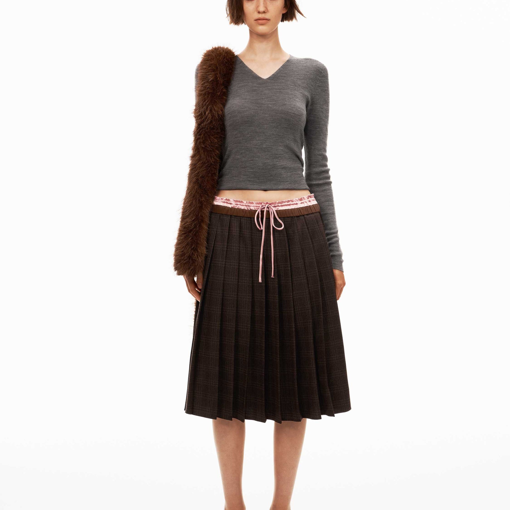 Double-Waistband Plaid Pleated Skirt