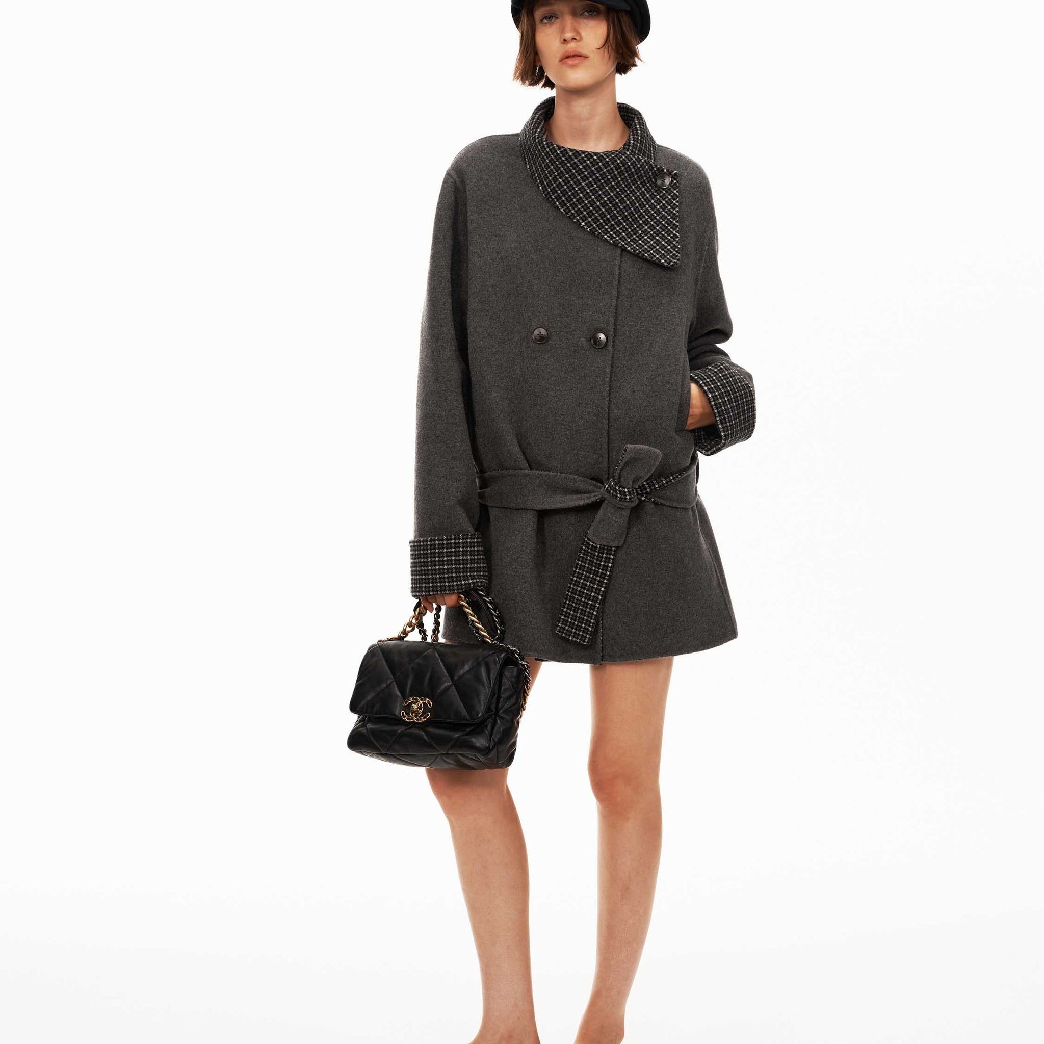 Double-Faced Check Wool Coat