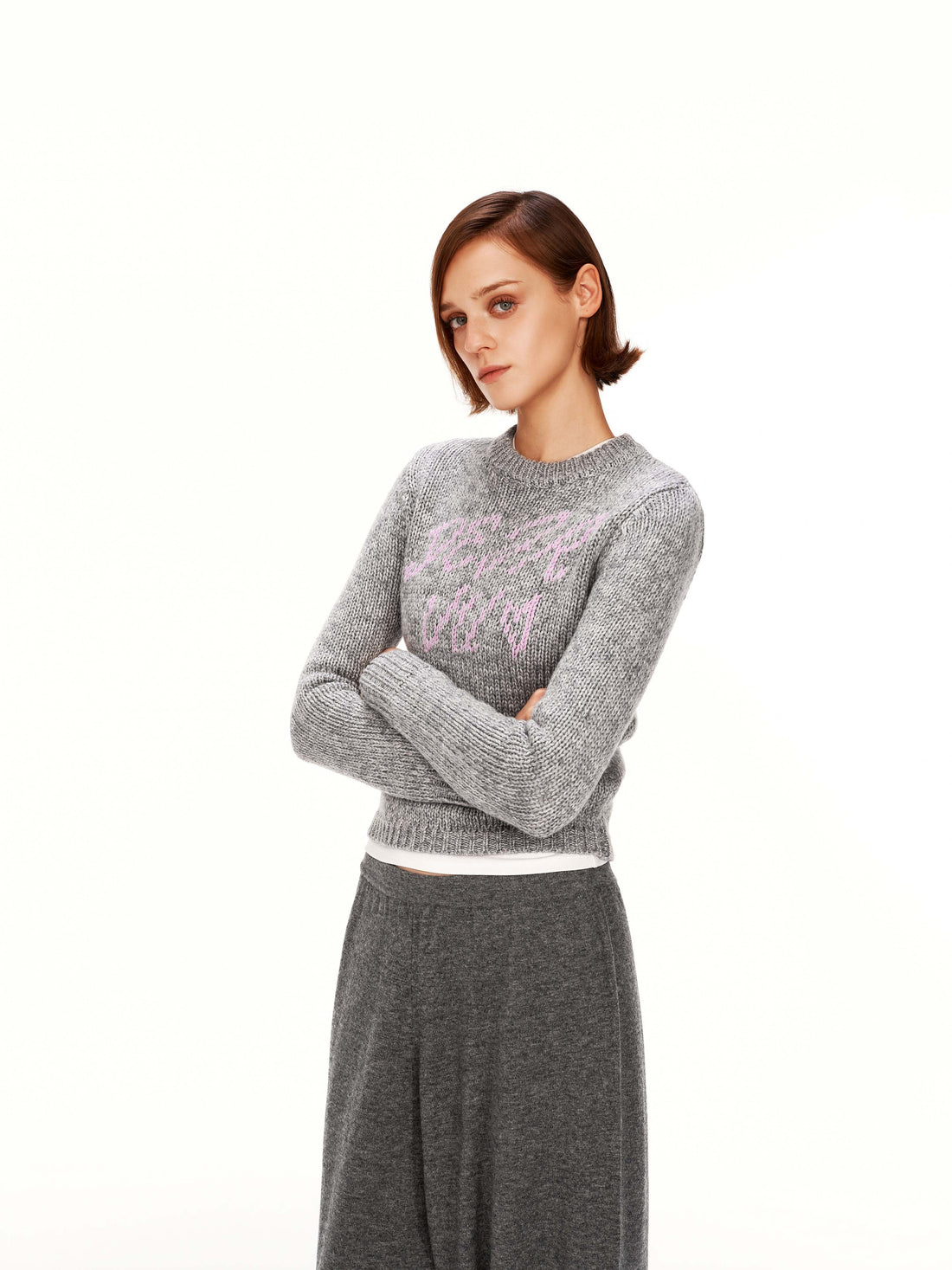 80s Basolan Wool Graphic Cropped Knit Sweater