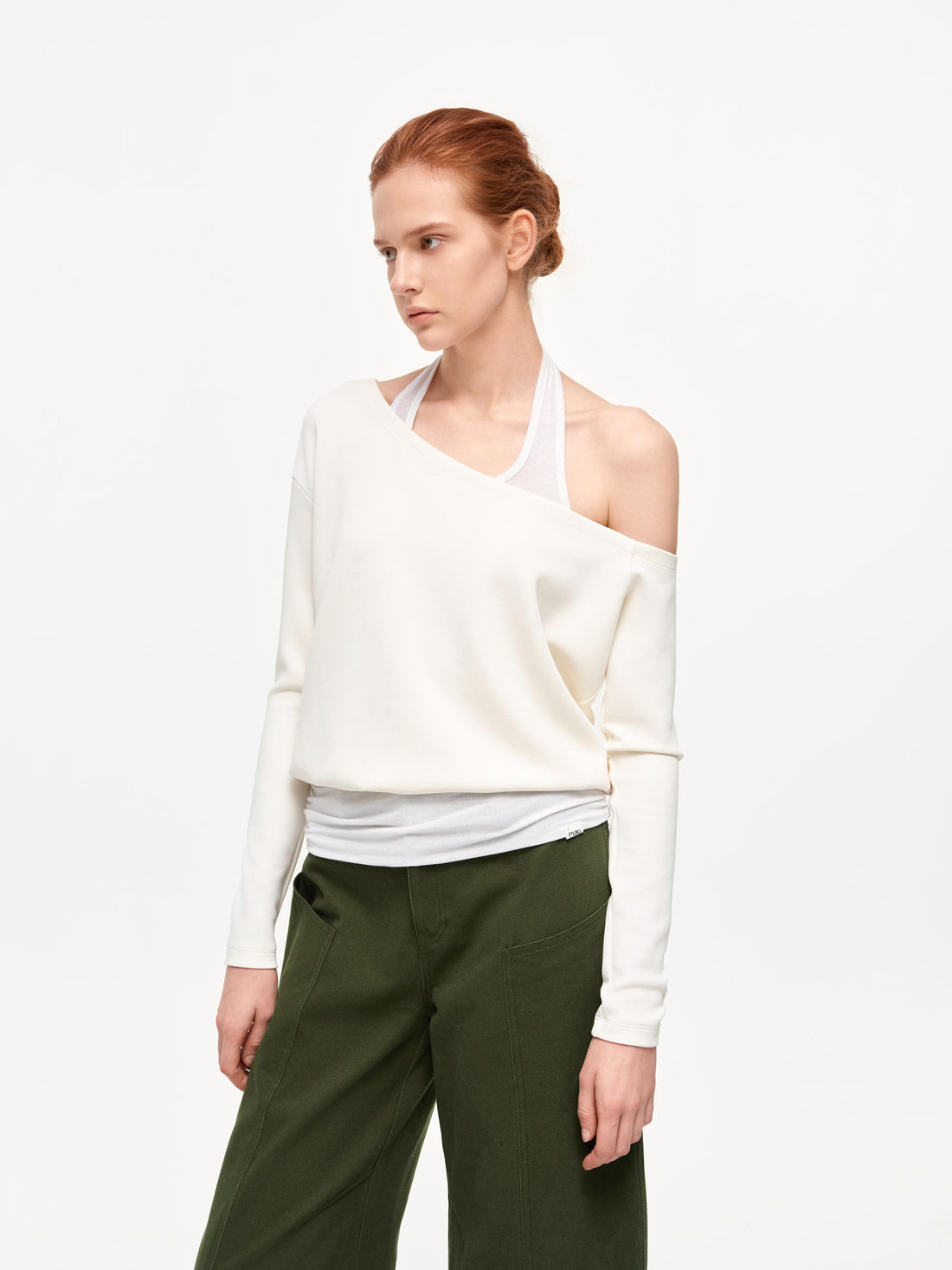 Asymmetric Off-Shoulder Airy Sweatshirt