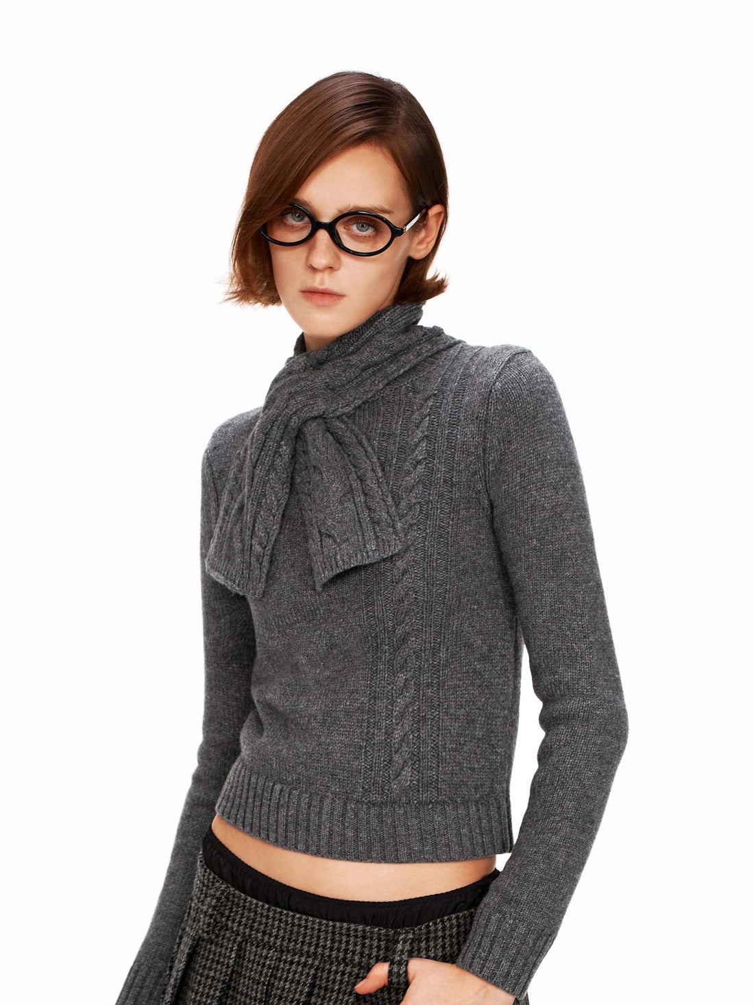 Asymmetrical Scarf Cable-Knit Wool Sweater