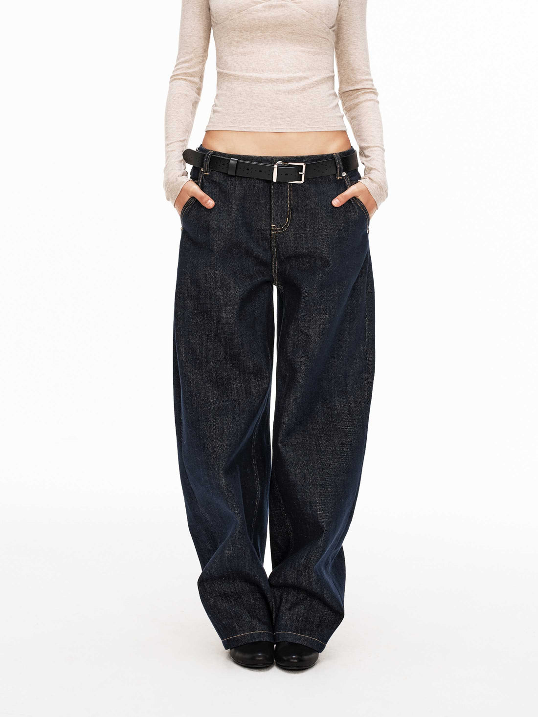 Handcrafted Whisker Mid-Rise Curved Denim Jeans