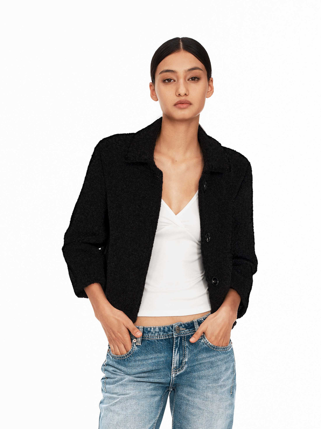 Textured Tweed Three-Quarter Sleeve Jacket