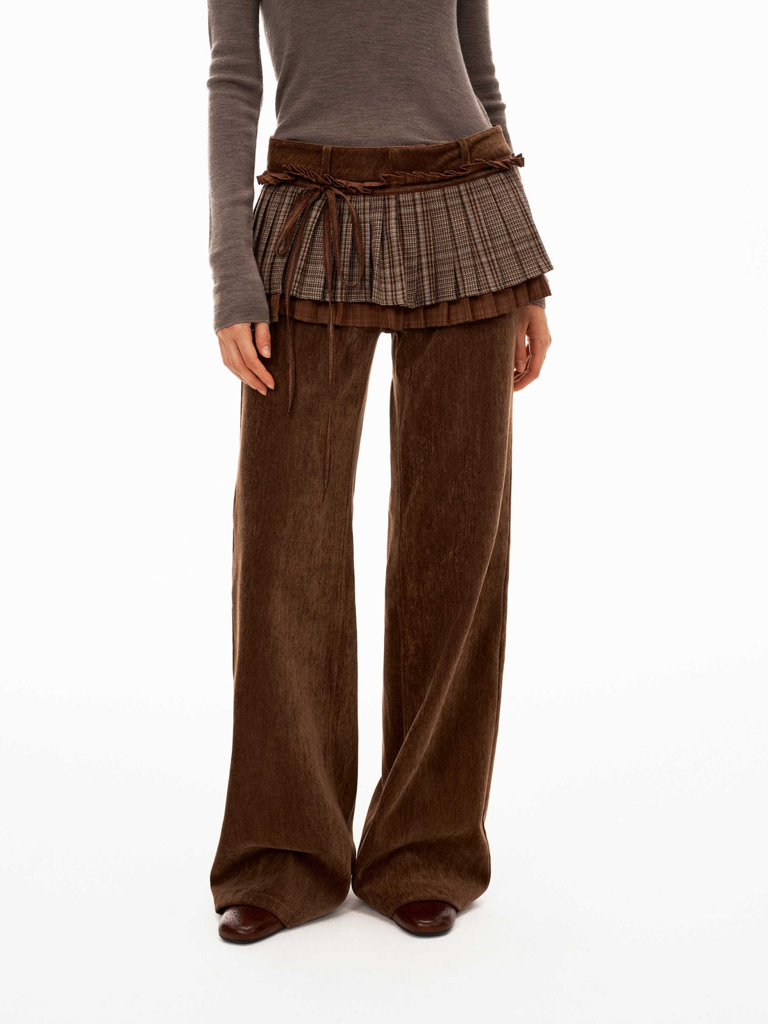 Bow-Detail Layered Split Pants