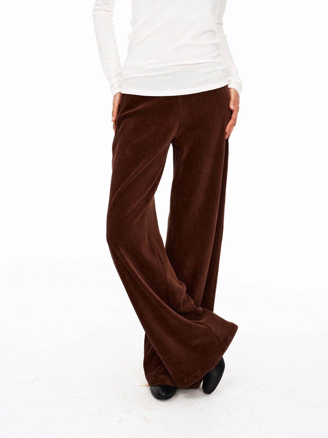 Corduroy Curved Pants with Belt