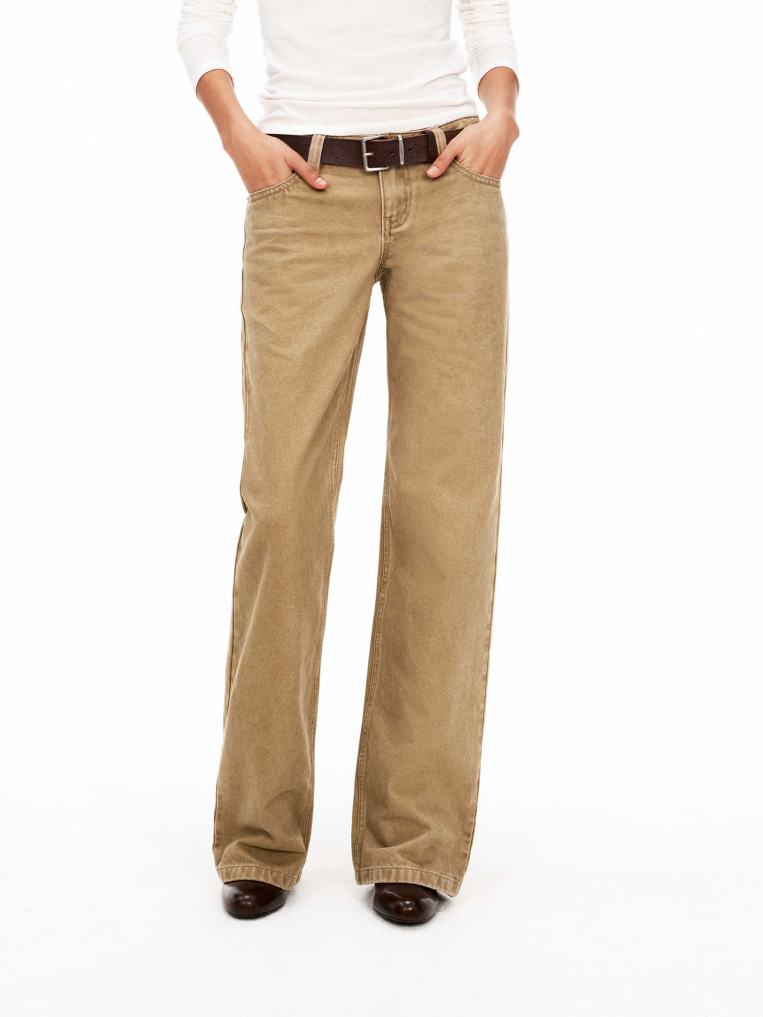Low-Rise Washed Khaki Utility Pants