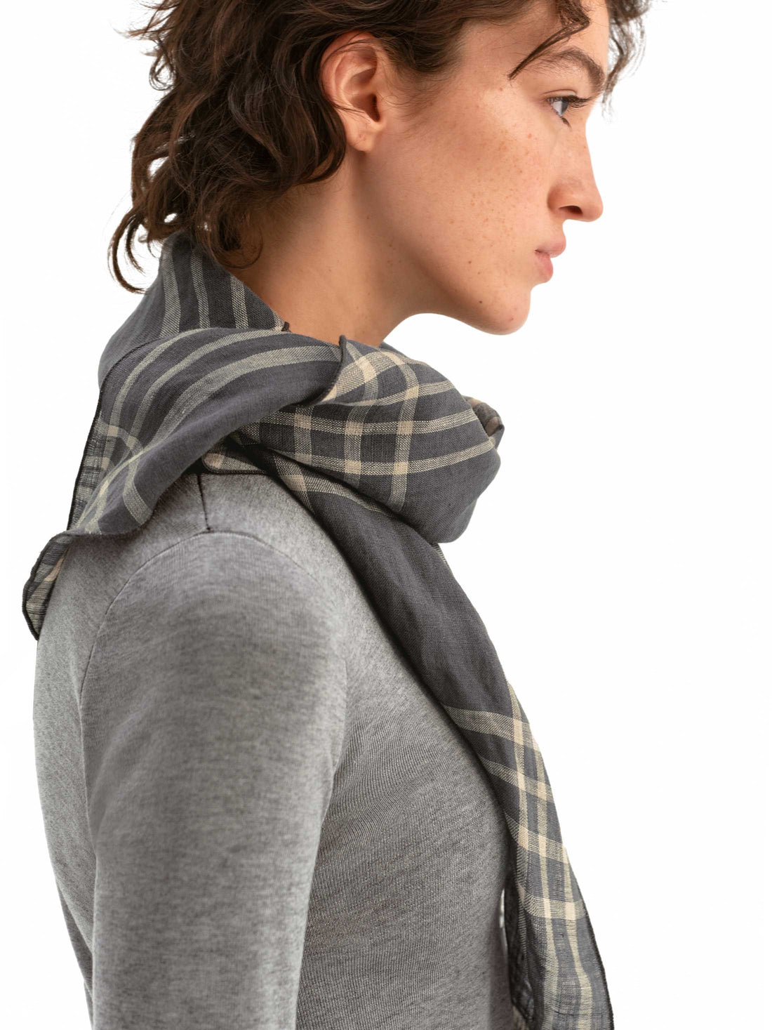 Cloud-Soft Linen Check Triangle Scarf