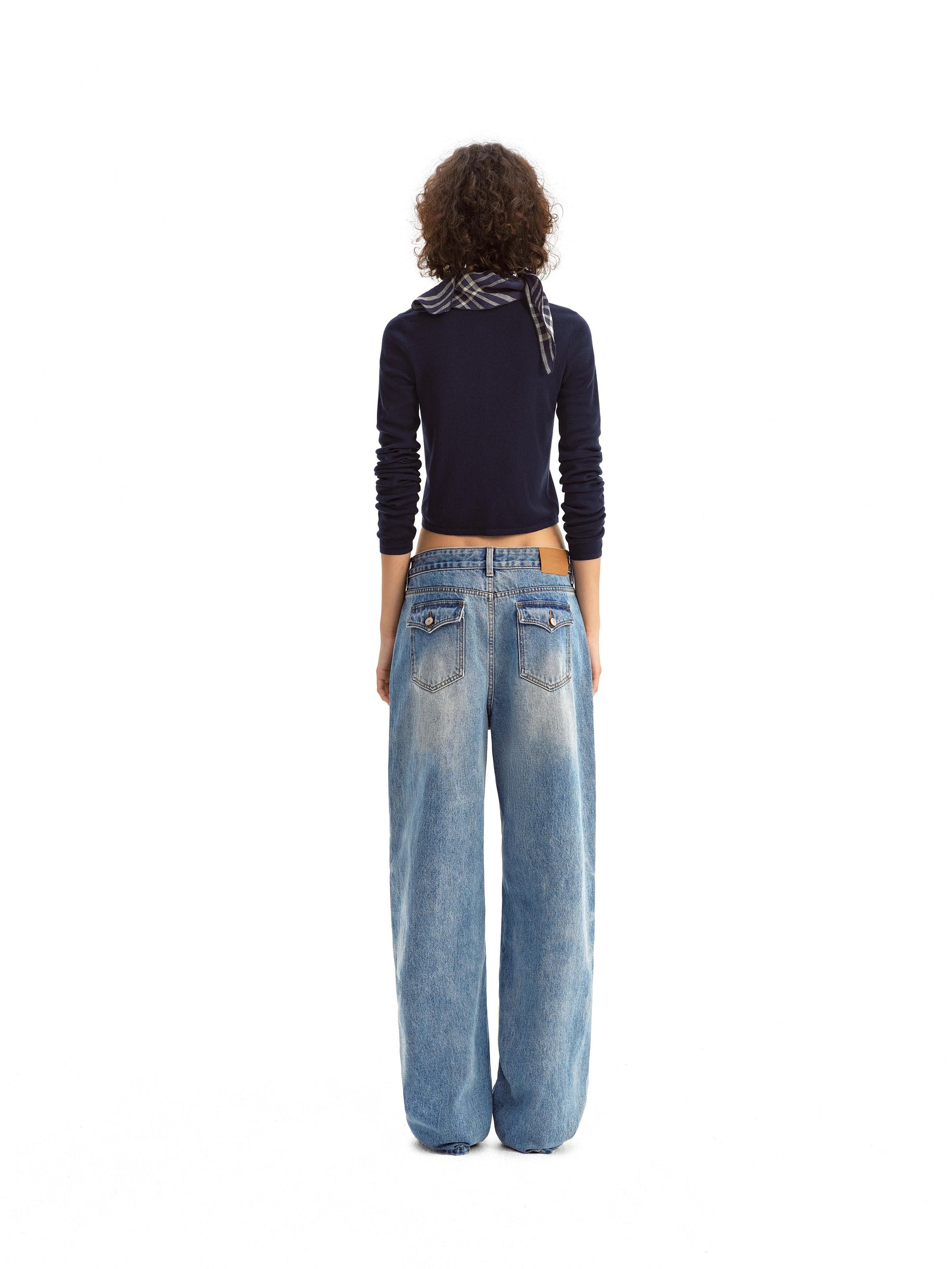 - Vintage Wash Jeans in a cocoon fit with subtle gradient fading for added depth. Detailed with triple-needle stitching throughout for texture and structure. The forward side seams slim the legs, while flapped back pockets enhance your shape. Finished with custom-branded rivets and a leather patch for a refined finish.
