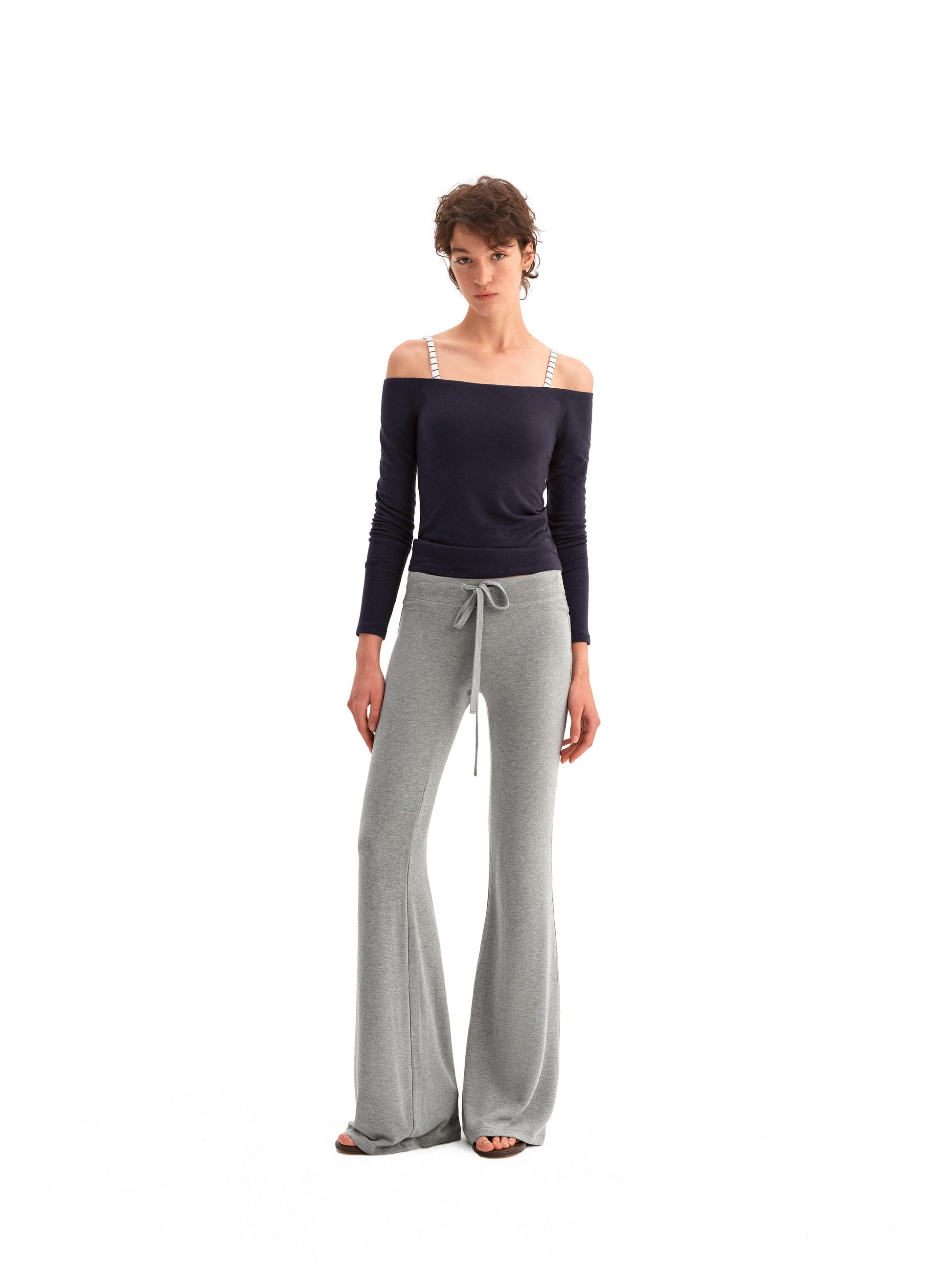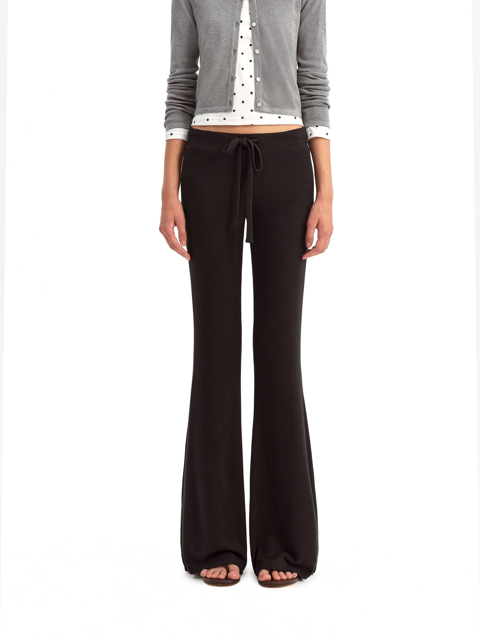 - Flared Lounge Pants with a relaxed, effortless vibe. Crafted with Haasuo stitching throughout for unique texture and artisanal detail. The wide waistband features a color-matched drawstring for adjustable comfort, reinforced with bartacking for durability. A curved back panel contours and lifts for a flattering silhouette — where ease meets elegance.