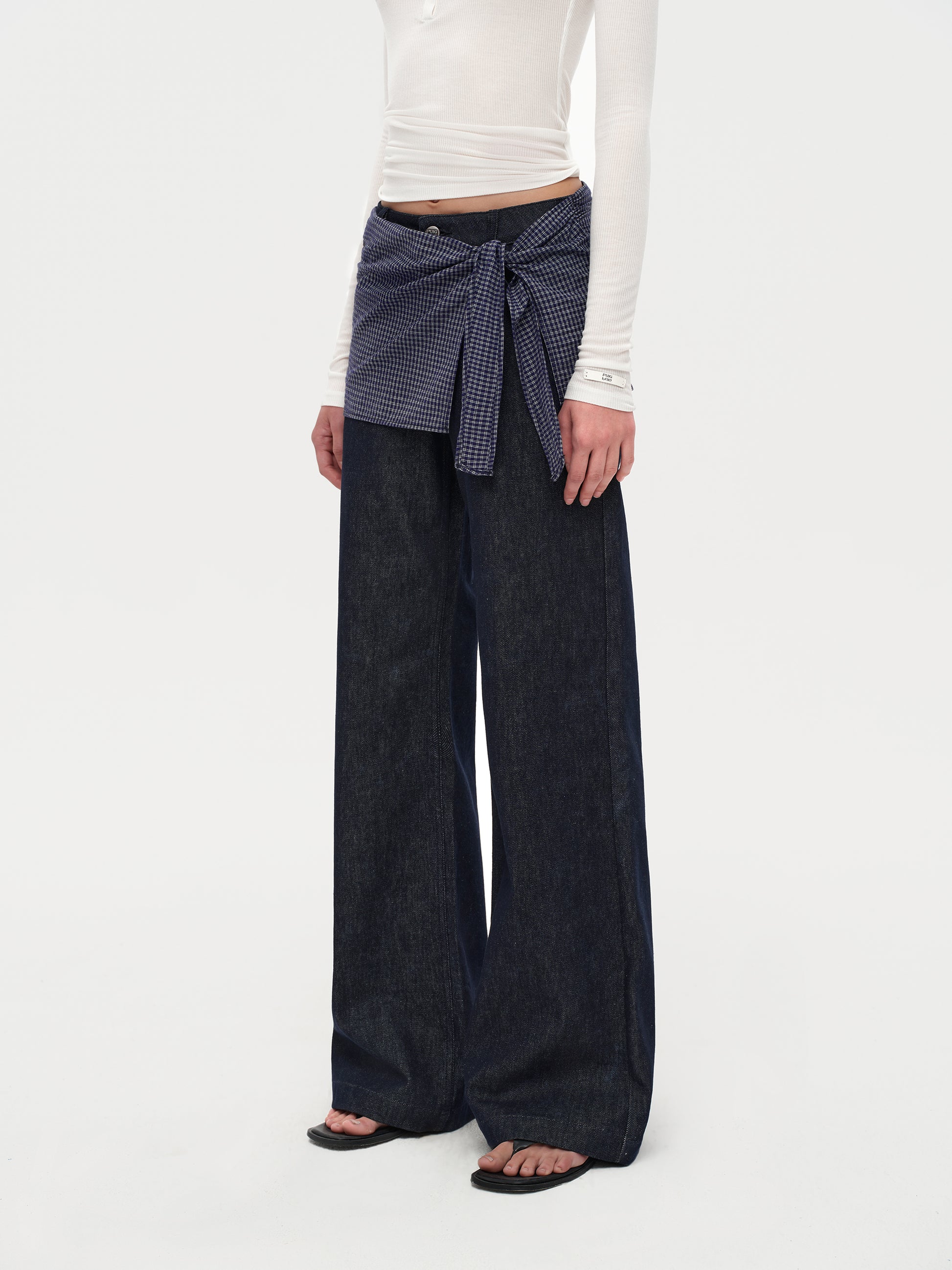 Gingham Tie Straight-Leg Jeans