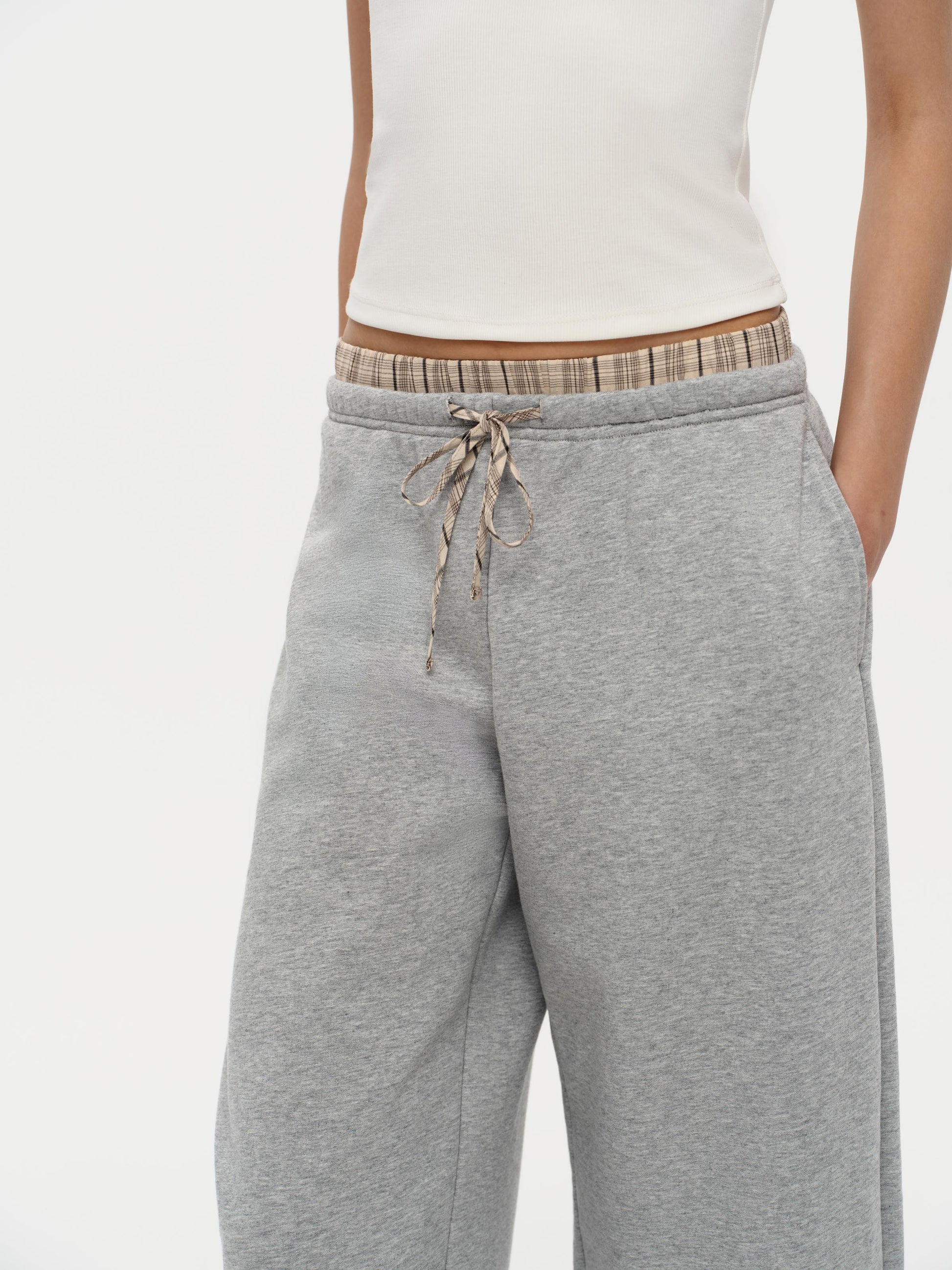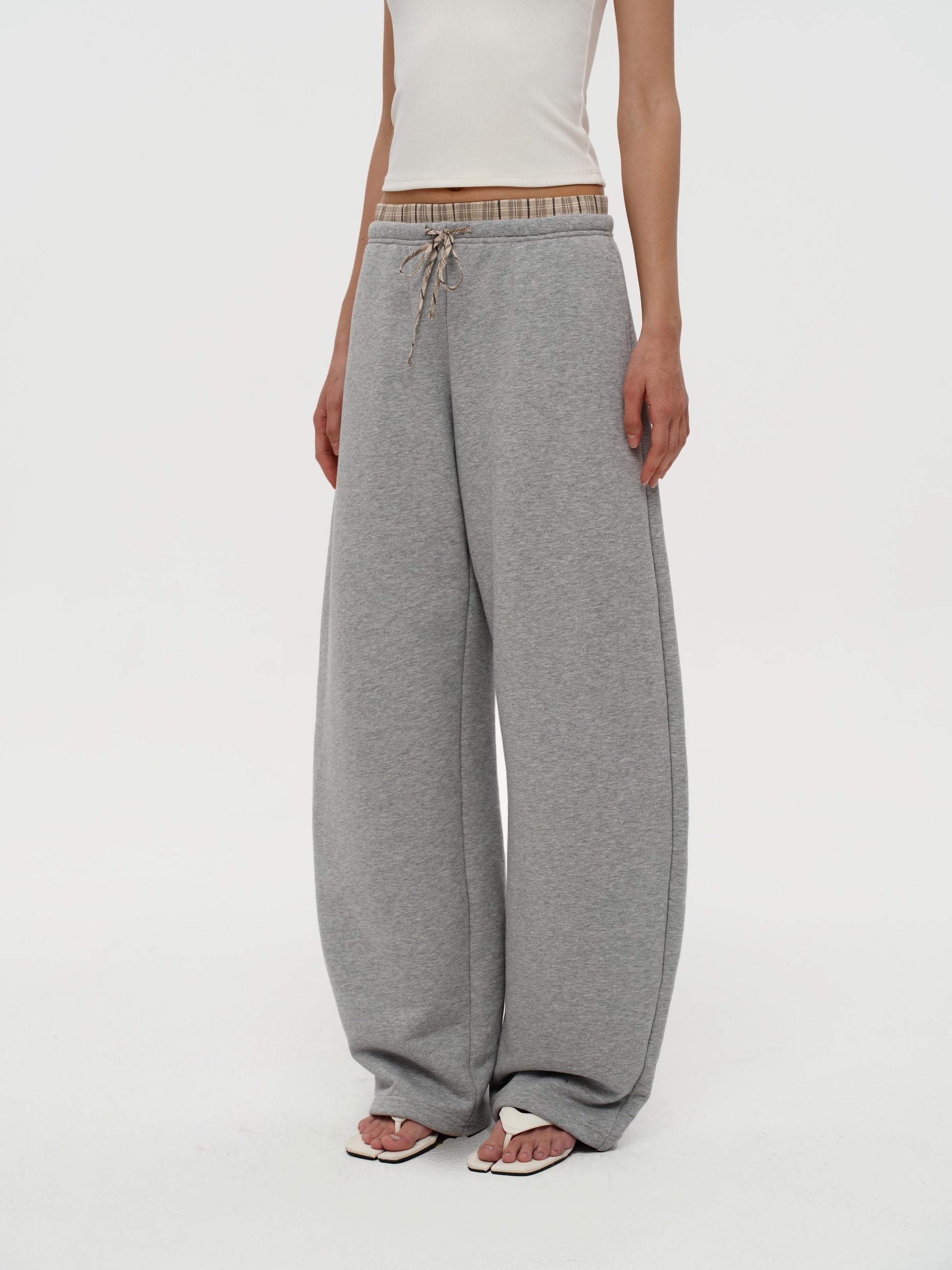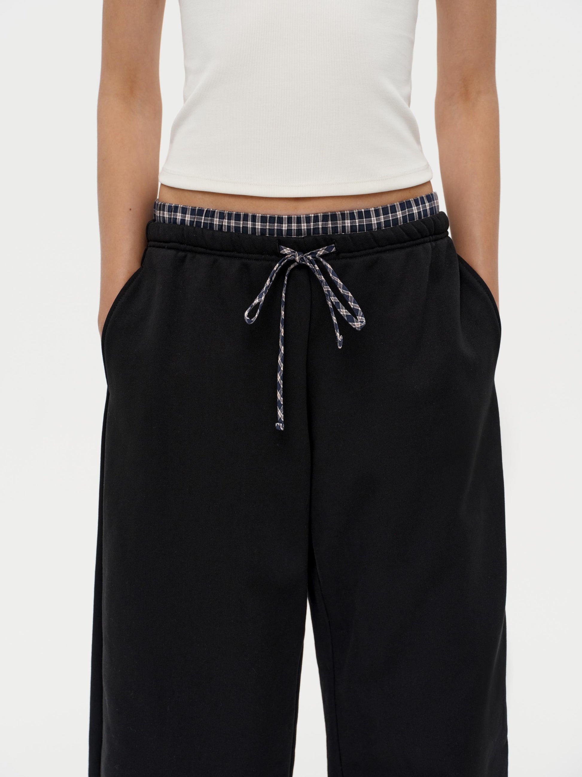 Relaxed curved fit with a structured 3D silhouette. Crafted from heavyweight cotton for softness and shape. Features a checkered contrast waistband — choose grey/yellow for a laid-back vibe or black/blue for versatile style. Elastic drawstring waist for easy wear, plus oversized side pockets.