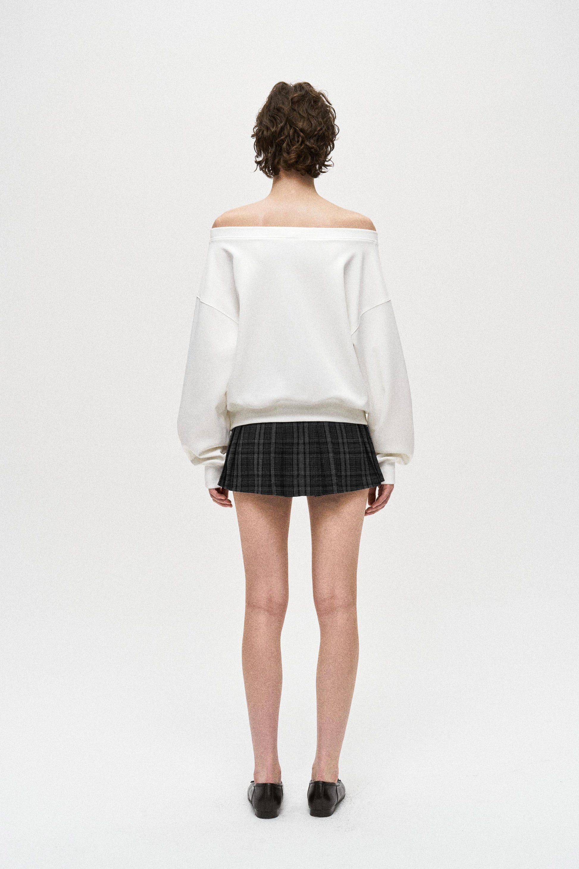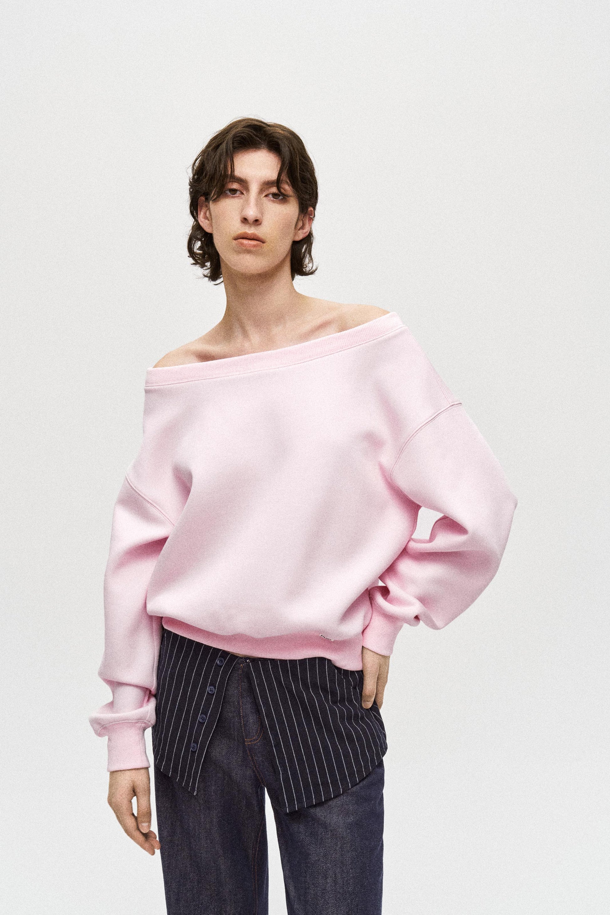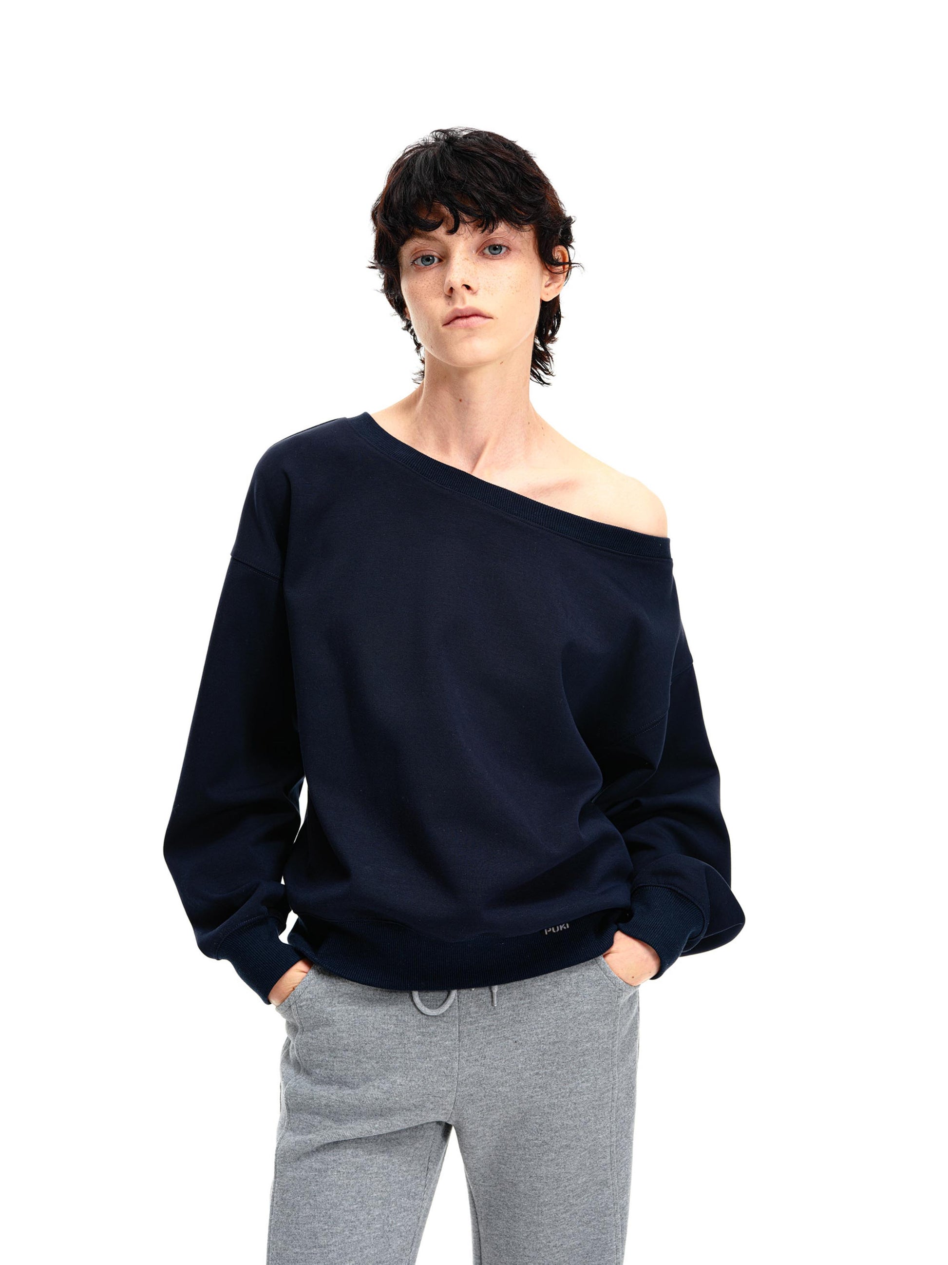 This hoodie is designed for a relaxed yet feminine look, featuring an off-shoulder cut that adds style without sacrificing comfort. Its versatile design can be worn both as an off-shoulder or a straight-shoulder top, offering two styles in one piece. Available in preppy navy, playful light pink, and versatile off-white to match any wardrobe.