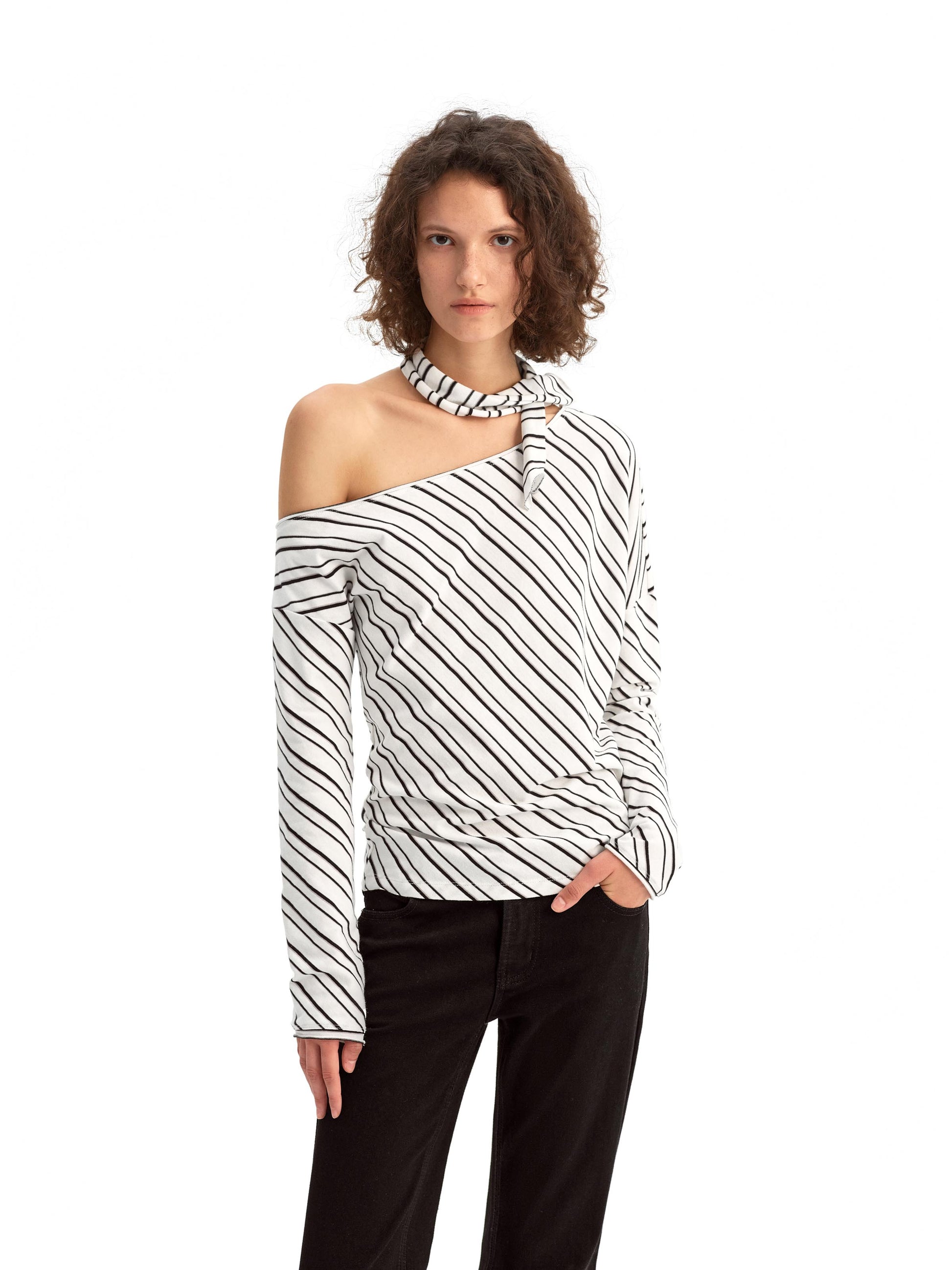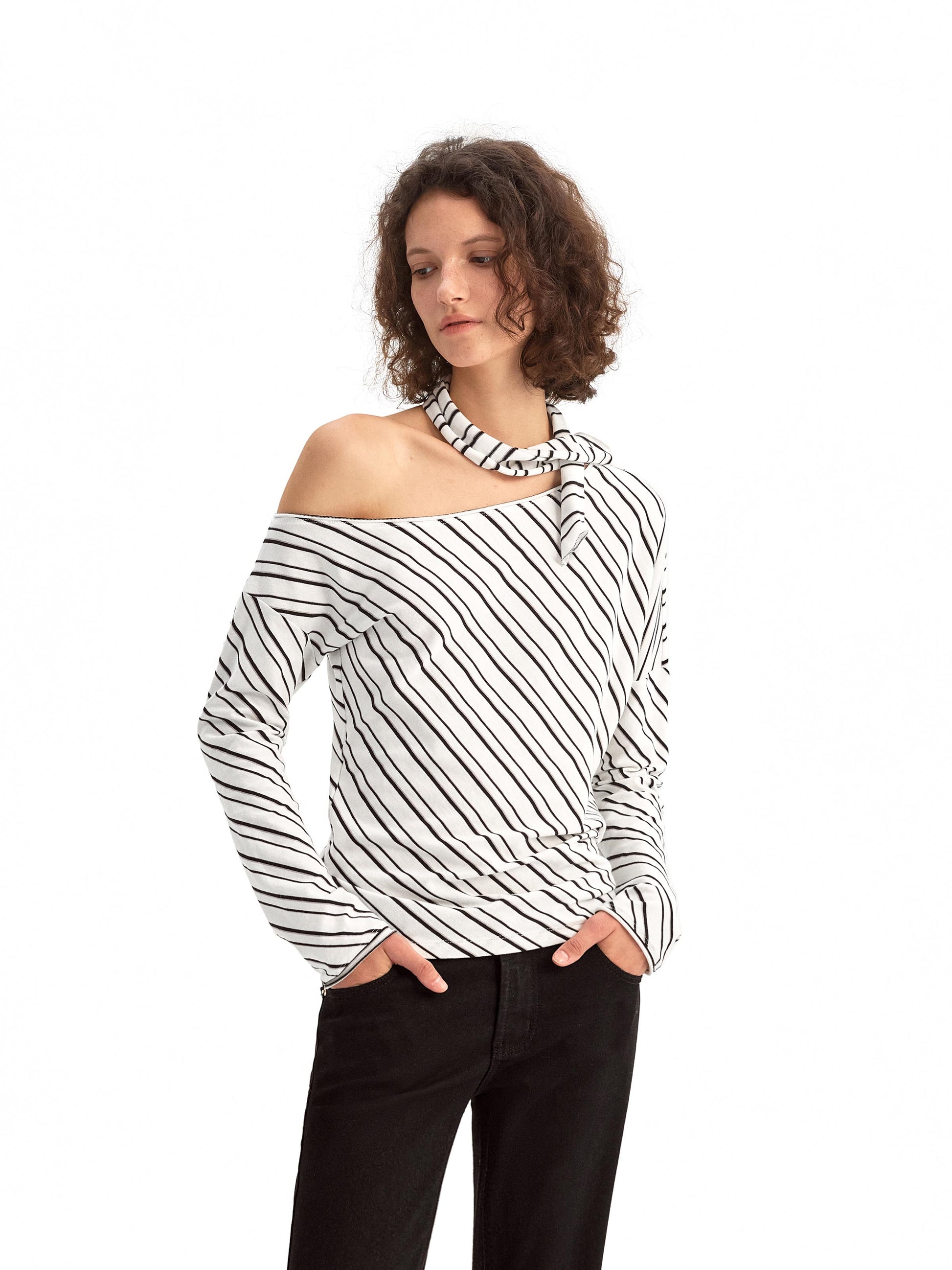 Striped Off-the-shoulder Knit